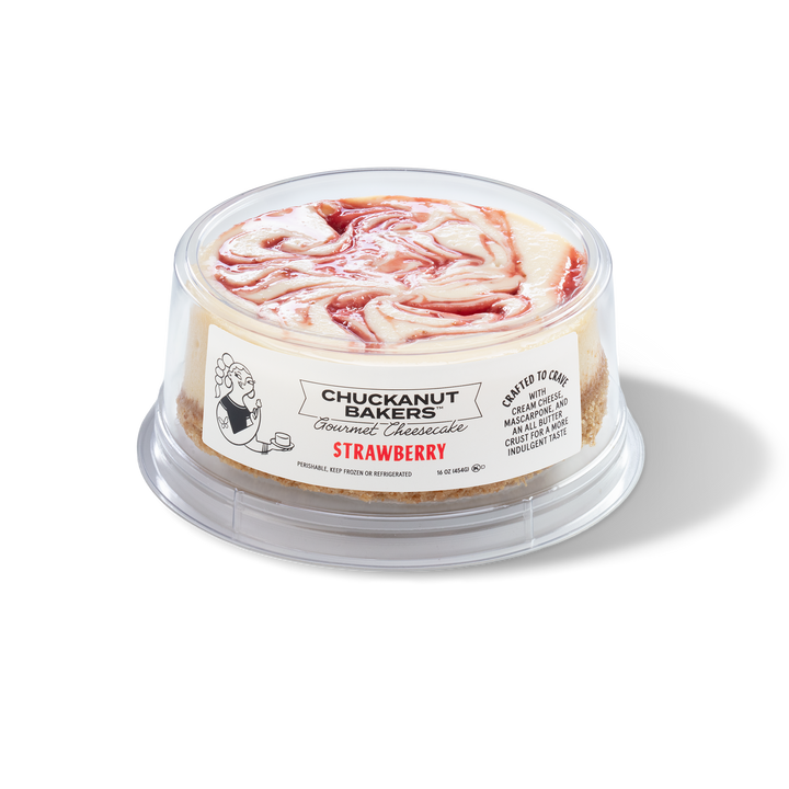 Our signature cheesecake batter meets ripe, juicy strawberries. The creamy, dreamy base is hand-mixed, poured over our all-butter crust, and topped with a succulent strawberry swirl for this modern spin on a crowd-favorite flavor.